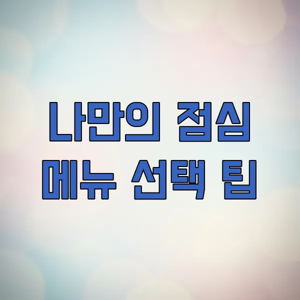 나만의 점심 메뉴 선택 팁